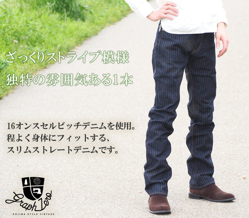 graphzero(グラフゼロ) 16オンス セルビッチ 針抜きヘリンボンZIPスリムストレートジーンズ ワンウォッシュ [GZ-16SLST-Z01-HHB] 岡山 倉敷 児島 ジーンズ デニム メンズ ヘビーオンス ジッパーフライ ジーパン カジュアル ストレート 紺 ネイビー 児島製 日本製
