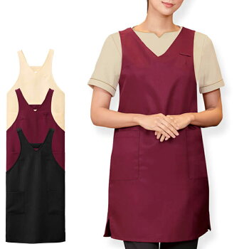 汚れが落ちやすいコスメリリース加工エプロン(H型)【エステ 美容 ユニフォーム サロン ネイル 汚れ 制服 ブラック 黒 バーガンディ ワイン おしゃれ 歯科 クリニック セラピスト 無地 シンプル ナースリー】3192
