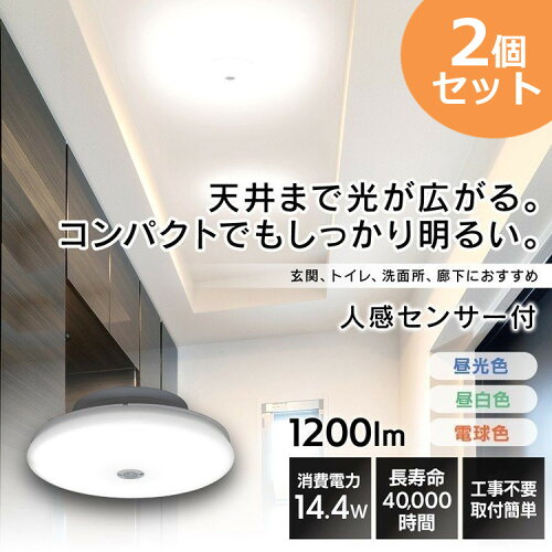 小型 シーリングライト 2個セット おしゃれ 小型シーリングライト led 人感センサー SCL12LMS-UU SCL12NMS-UU SCL12DMS-UU 電球色 昼白色 昼光色 小型 シーリング LED led 薄形 1200lm 人感センサー付 照明 ライト 工事不要 節電 小型 薄型 アイリスオーヤマ