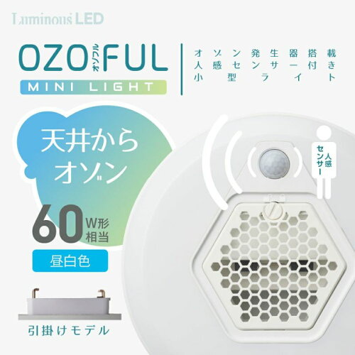 ドウシシャ オゾン発生器搭載小型ライト OZOFUL(オゾフル) 小型モデル 引掛けタイプ(引掛シーリング式) 昼白色 約880lm(電球60W相当) 人感センサー OZMH-W60N