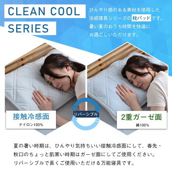 接触冷感 リバーシブル 枕パッド 冷感 洗える 抗菌防臭 防ダニ 綿100% コットン 2重ガーゼ CLEAN COOL クリーンクール 枕パッド 約43×63cm 涼感 冷感マット 夏用 涼しい 冷たい ひんやりマット まくらパッド エコ 省エネ