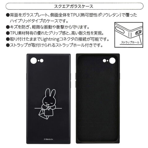 ミッフィー iPhoneSE(第2世代)/8/7対応スクエアガラスケース(ブラック) [502595]