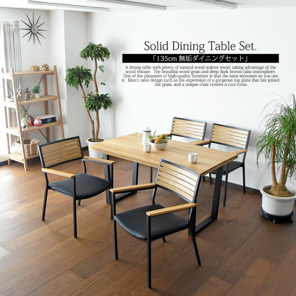 商品情報 材質 ■テーブル ウォールナット/オーク無垢 ラバーウッド無垢(木脚) スチール(鉄脚) オイル塗装 ■チェア 突板/天然木 スチール/PVC ウレタン塗装 サイズ ■テーブル ・幅135 奥行80 高さ70cm ■チェアー ・幅57 奥行57 高さ81/SH44cm カラー ・ブラウン(ウォールナット)/ナチュラル(オーク) 特徴 ・テーブルは簡易組立(脚取付け) チェアは完成品です。