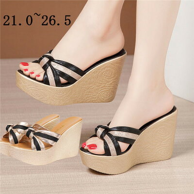 サンダル レディース かかとなし 歩きやすい シャワーサンダル ミュール 厚底サンダル つっかけ ウェッジソールサンダル ゴールド ブラック ヒール11cm ハイヒール カジュアル フェミニン 小さいサイズ 大きいサイズ 21.5 22.0 22.5 24.5 25.0 25.5 26.0 26.5 di086x2x2t2