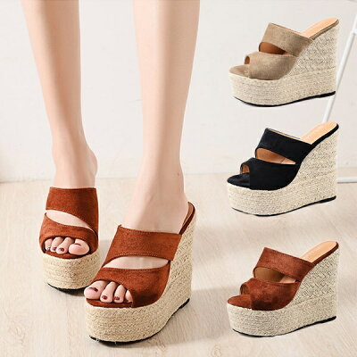 サンダル レディース 歩きやすい 旅行 厚底 ウェッジソール リラックスサンダル 黒 コンフォートサンダル 美脚 つま先なし スエード サボサンダル ミュール 小さいサイズ ヒール14cm ヒール11cm オープントゥ ブラック ブラウン ベージュ 21.0/21.5/22.0〜24.5